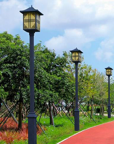 太阳能霍城庭院灯以太阳辐射能为能源,白天利用太阳能电池板给蓄电池充电,晚上蓄电池给庭院灯光源供电使用,无需复杂昂贵的管线铺设,可任意调整灯具的布局,安全节能无污染,充电及开/关过程采用智能控制,光控自动开关,无需人工操作,工作稳定可靠,节省电费,免维护。